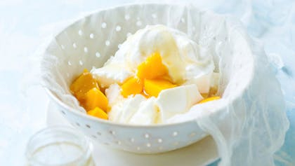 Testez notre recette de Fontainebleau aux fruits jaunes ! Également appelé bellifontain ou crémet, ce dessert a été inventé au XVIIIe siècle. Certains y ajoutent des blancs d'oeufs montés au sucre.