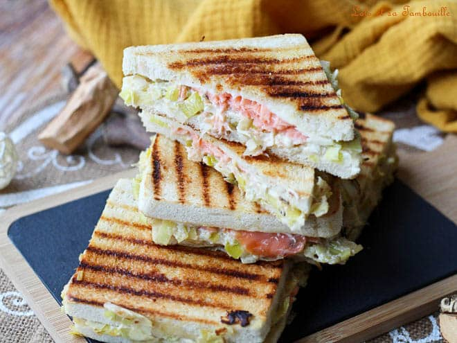 5. Sur 6 tranches de pain de mie, répartir la préparation à base de poireaux.