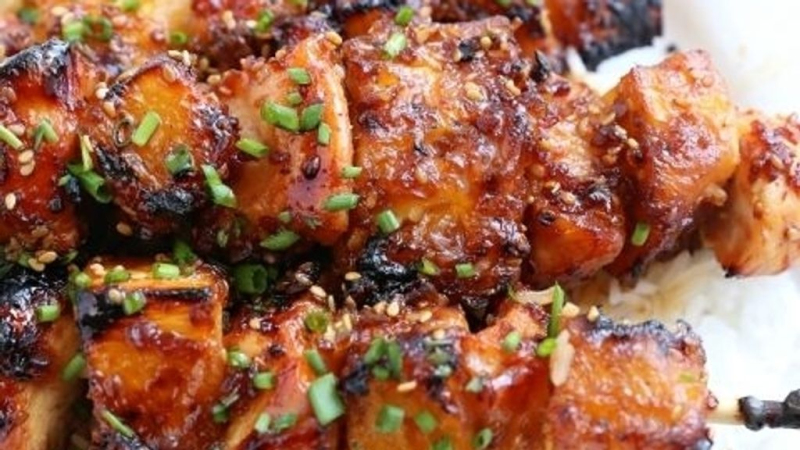 10. Piquez les morceau de bœuf dans des brochettes, versez un peu de sauce sur les tagliatelles et servez. Vous pouvez ajouter un peu de menthe et de coriandre pour la décoration.