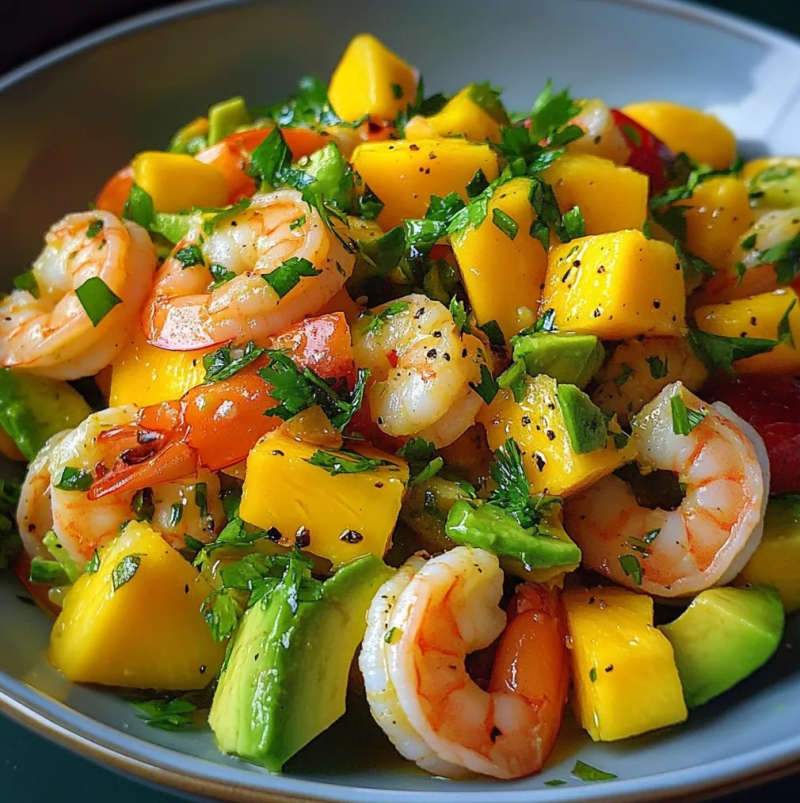 Une salade estivale et rafraîchissante, combinant avocat, mangue et crevettes dans une vinaigrette légère au citron vert.