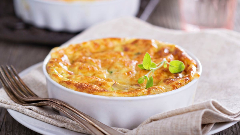4. Verser les spaghetti dans un plat.Ajouter l'appareil puis enfourner à 180°C pour 30 minutes.