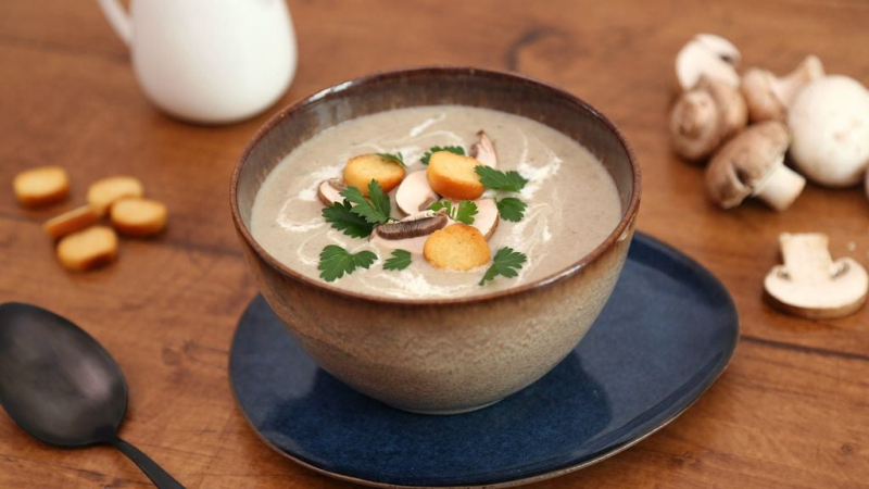 champignons de Paris, pomme de terre, oignon, ail, poivre, sel, muscade, persil, kub or, crème liquide