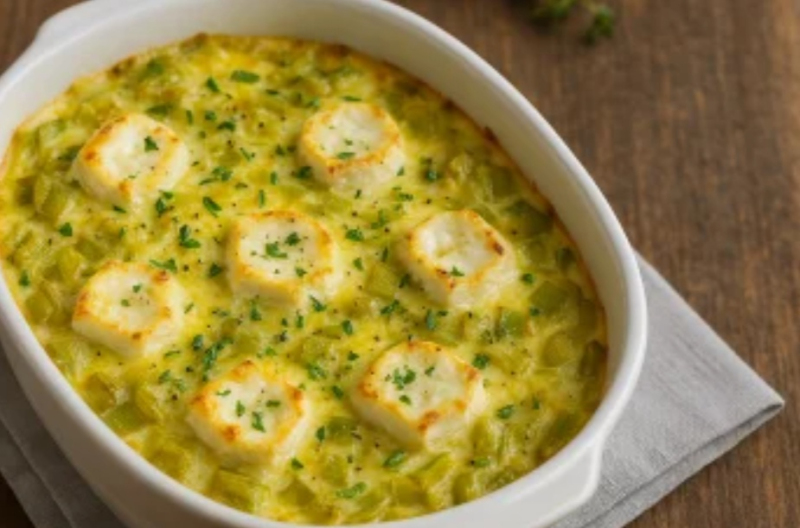 Gratin léger aux poireaux, chèvre et œufs, recette IG bas facile, parfaite en mars. Idéale pour un dîner sain, sans sucre et riche en fibres.