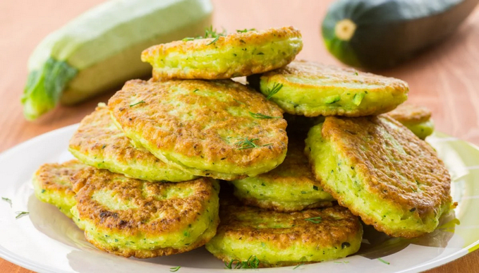 2. Dans un saladier, placer la courgette râpée et verser la préparation du mixeur, mélanger.