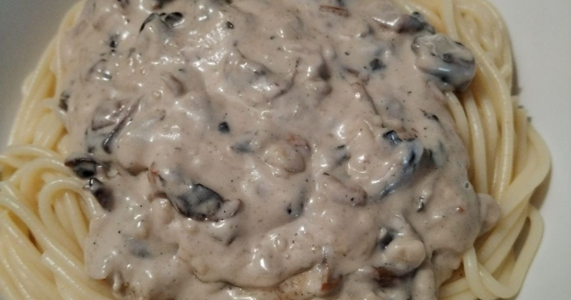 9. Prenez une assiette, mettez les pattes et à l'aide d'une louche, disposé votre sauce champignons sur vos pâtes.