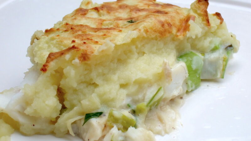 Versez le poisson et sa sauce dans un plat beurré. Recouvrez de purée. Saupoudrez éventuellement de paprika, voire de cheddar pour une version encore plus gourmande.